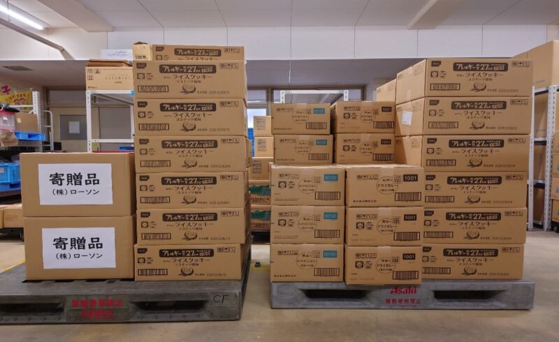 令和7年12月11日、株式会社ローソン様からご寄贈の災害備蓄食品、フードドライブでお集めいただきました食品や日用品を佐賀県よりおつなぎいただきました。